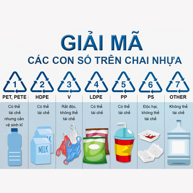 Các ký hiệu trên chai lọ nhựa cần biết để tránh nhiễm độc