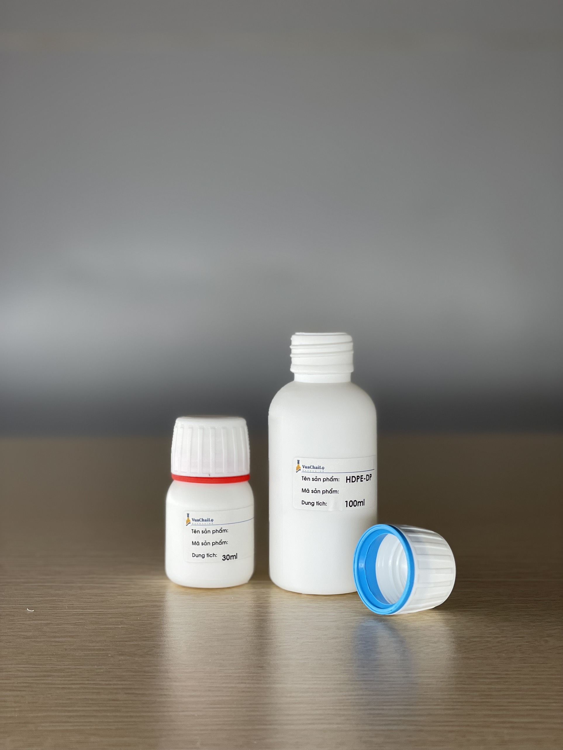 Chai Dược Phẩm Dạng Siro Nhựa HDPE 30ml và 100ml cùng với nắp loại nắp thông dụng được sử dụng nhiều để đựng các loại dược phẩm viên nén và dạng viên, hoặc có thể dùng làm vỏ lọ đựng thực phẩm chức năng.