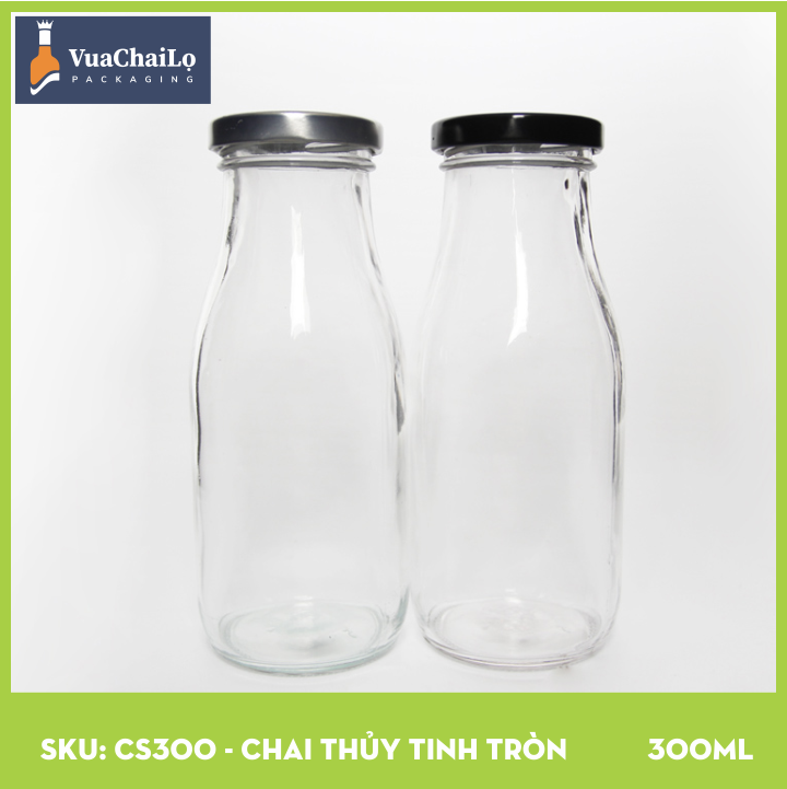 - Chai Thủy Tinh Tròn 300ml với thiết kế nhỏ gọn, đẹp mắt và độ tiến ích cao rất phù hợp dùng cho bếp ăn, quán ăn, nhà hàng hay phá cách hơn là tạo điểm nhấn cho quán trà sữa, sinh tố…