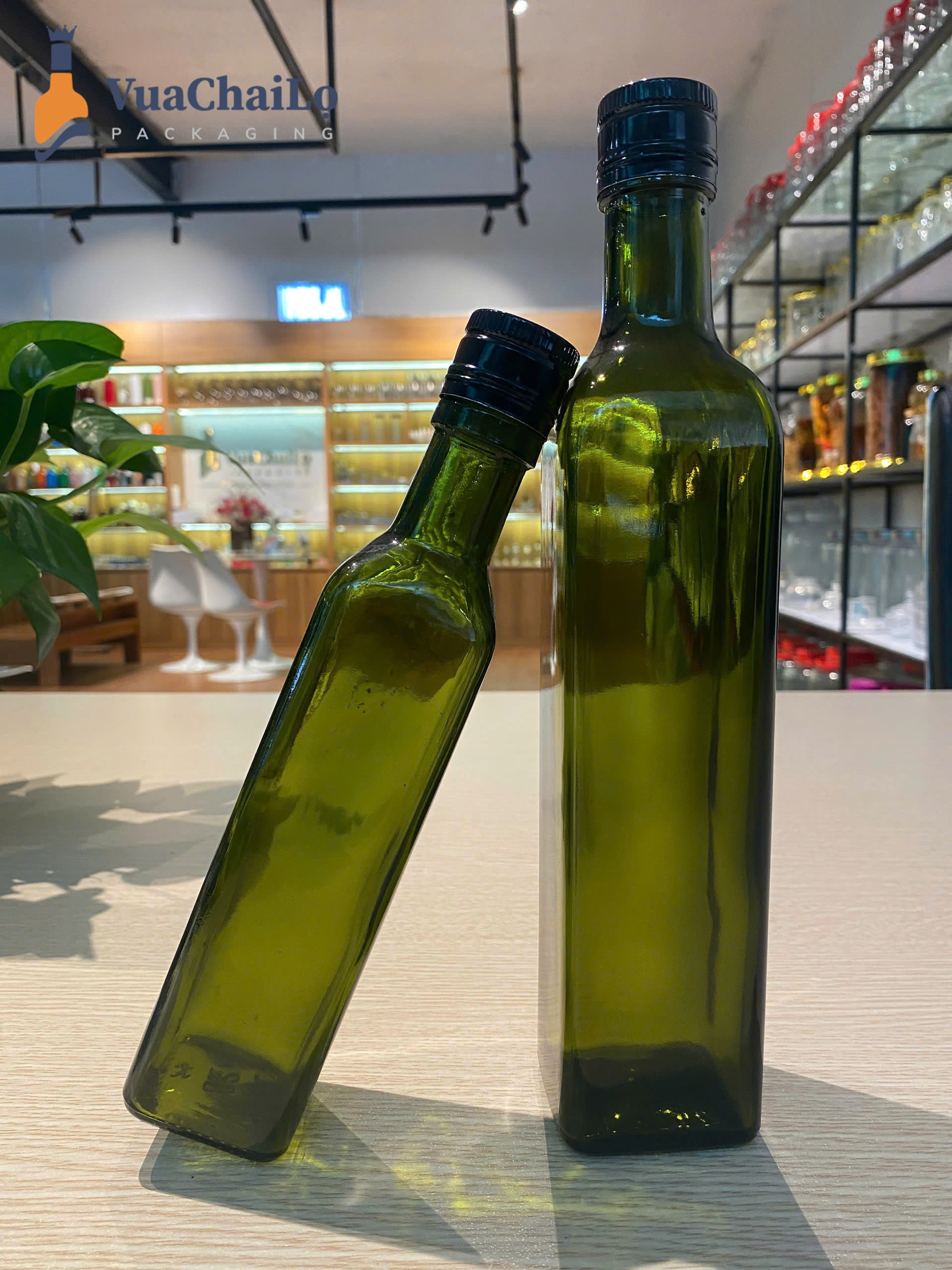Chai Thủy Tinh Đựng Dầu Ô Liu Màu Xanh Đen Cao Cấp