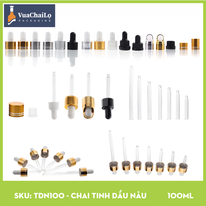 Nắp chai: nắp nhựa nhỏ giọt, nắp vàng, nắp kim loại, nắp phun sương, nắp bóp cao su ống thủy tinh...