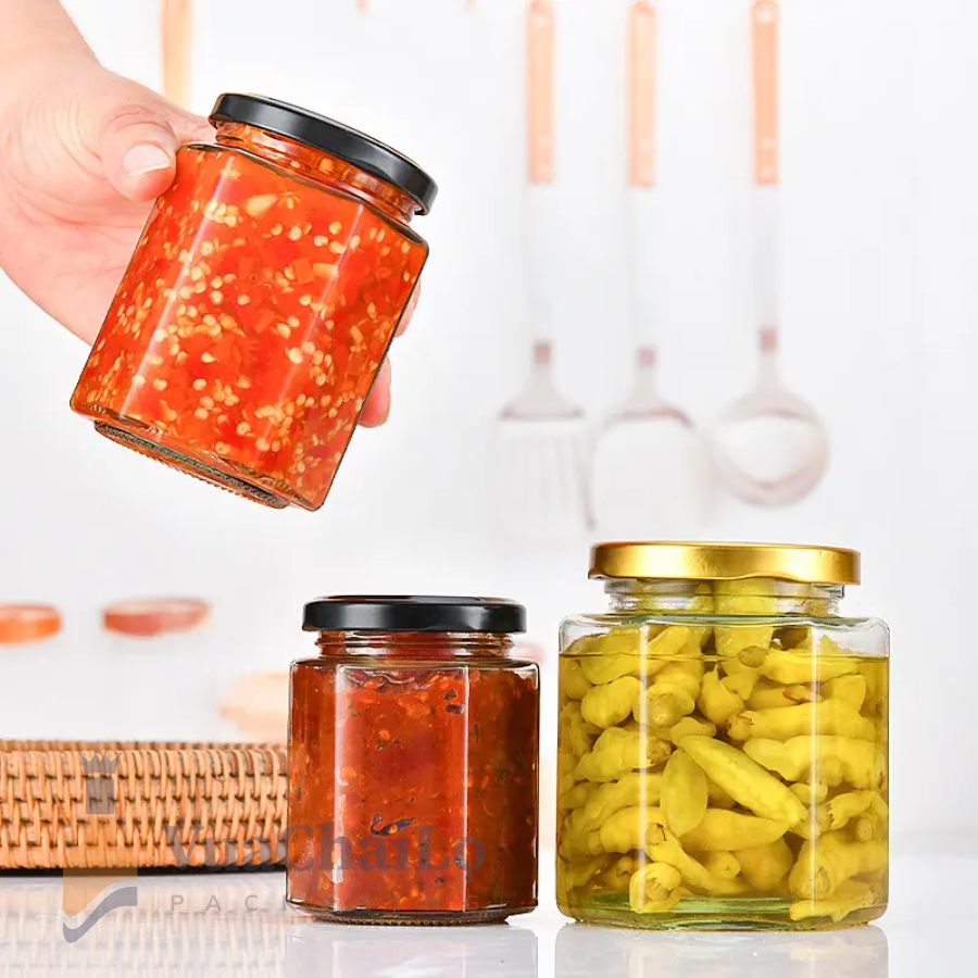 - Hũ lục giác thủy tinh: Độc đáo, thu hút, thích hợp làm quà tặng hoặc trưng bày.