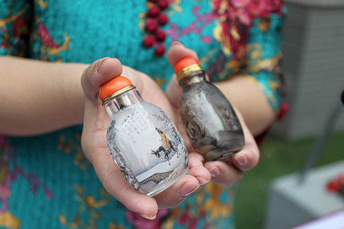 Đới với tranh cát trong lọ thủy tinh thì các loại cát đa sắc sẽ được sắp xếp cẩn thận thành bất cứ hình nào mà nghệ nhân mong muốn. Chẳng hạn như thư pháp, hình động vật, con người và phong cảnh, …Sau đó được đặt trong các vật thủy tinh ví dụ như lọ, bình, cốc, chai. Do tranh cát được đặt trong bình hay hũ thủy tinh nên khi ngắm tranh cũng khác so với tranh thường. Cụ thể tranh sẽ được xem dưới dạng gần như 3D vì nó cũng phải được uốn theo độ cong của bình, cốc.